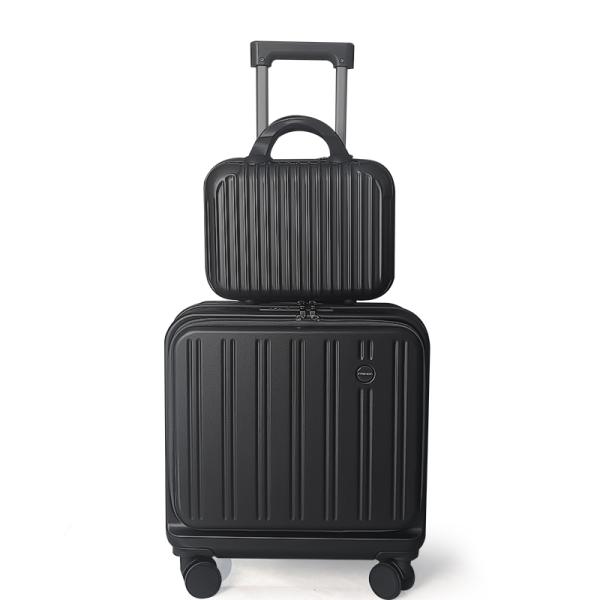 2-piece set ABS hard shell luggage 18-inch carry-on luggage black color TSA lock spinner wheel suitcase ,USB -charging multi-functional front opening Images |